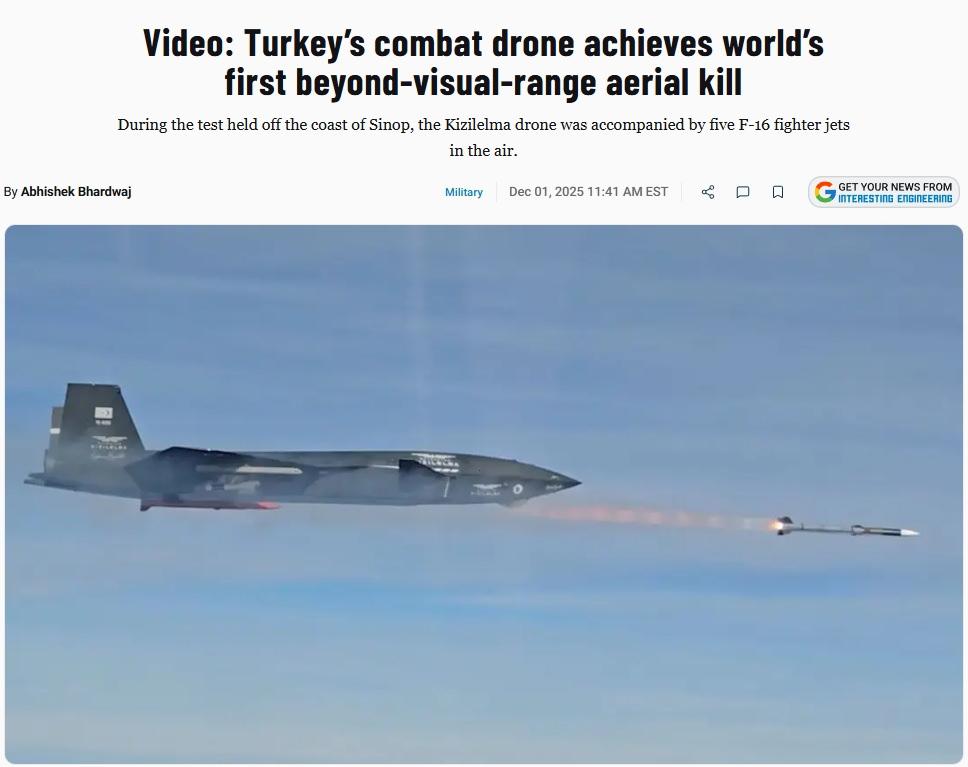 ABD merkezli bir teknoloji ve mühendislik haber sitesi Interesting Engineering, KIZILELMA’nın başarısını dünyada bir ilk diyerek manşetine taşıdı.