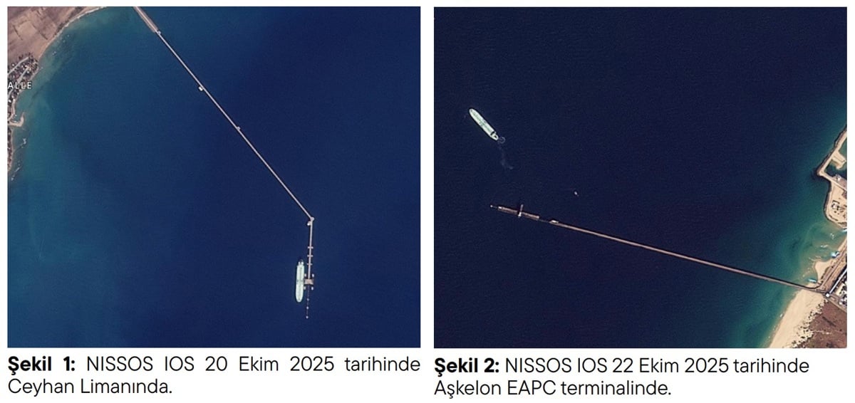 Raporda, Ceyhan Limanı’ndan ayrılan ancak konşimentoda belirtilen varış limanlarına hiçbir zaman ulaşmamış 57 ham petrol sevkiyatı tespit edildi. Uydu görüntülerine göre bu sevkiyatlar, İsrail’in Aşkelon Limanı’na yanaştı.