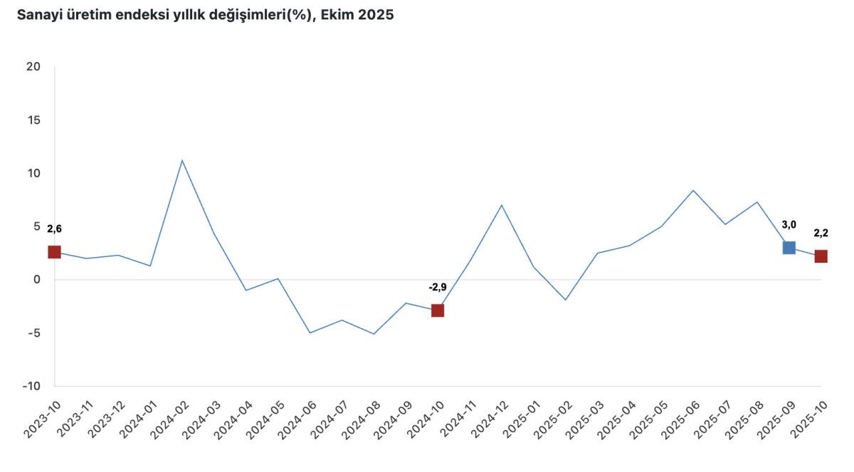 TÜİK verilerine göre, sanayi üretimi aylık yüzde 0,8 azalırken, yıllık yüzde 2,2 arttı.